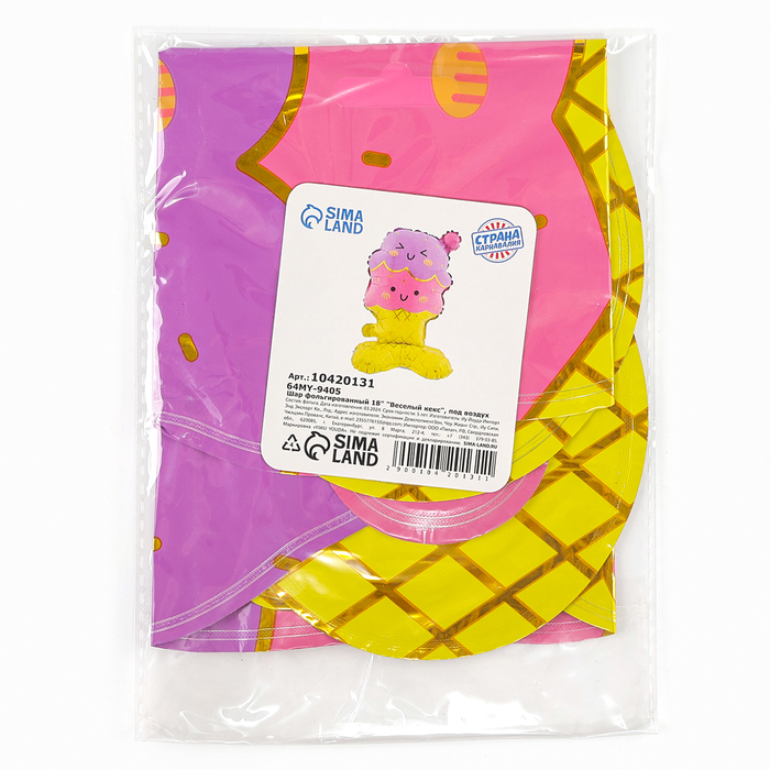 Воздушный шар фольгированный 18" «Весёлый кекс на подставке», под воздух — Характеристики