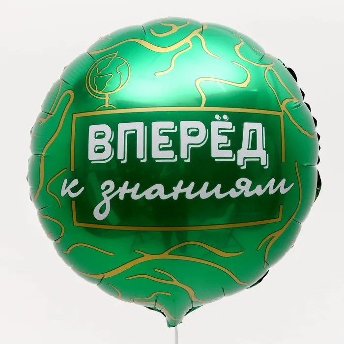 Фольгированный шар в виде круга с надписью «Вперёд к знаниям» поможет оформить стадион или актовый зал школы для торжественной линейки в честь Дня знаний. Зелёный цвет шара напоминает цвет школьной доски. Также шар может стать дополнением к подарку для ребёнка, который пошёл в первый класс.