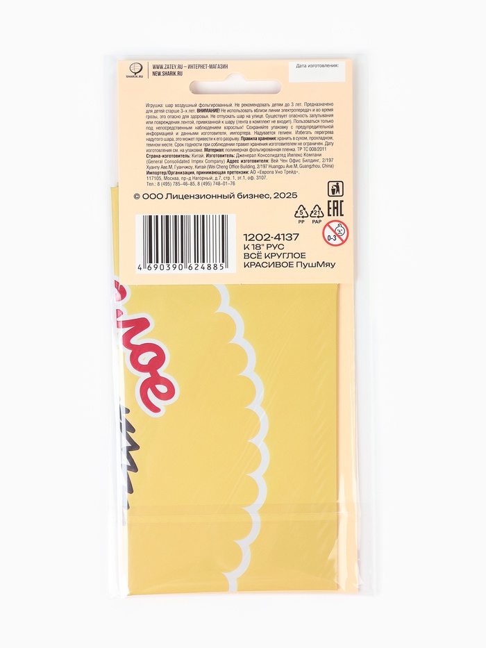 Воздушный шар фольгированный 18" «Все круглое красивое, ПушМяу» — Характеристики