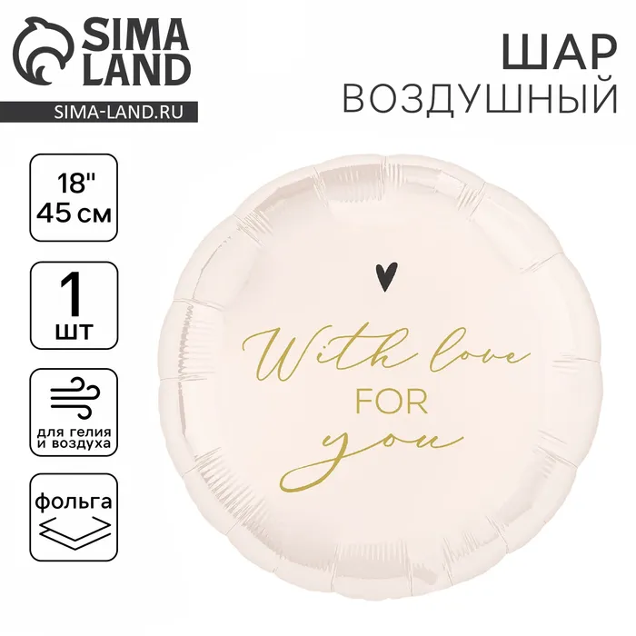 Фольгированный шар в форме круга со стильной надписью With love for you («С любовью для тебя») станет приятным подарком для любимого человека и поможет красиво оформить помещение для праздника.