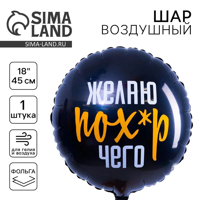 Воздушный шар фольгированный 18" «Желаю пох*р чего», круг — Характеристики