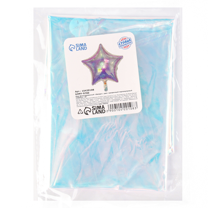 Воздушный шар фольгированный 18" «Звезда», перламутровый — Характеристики