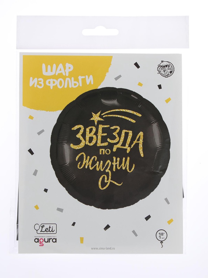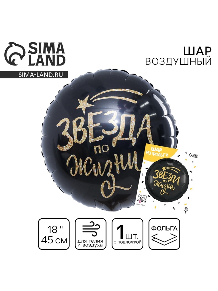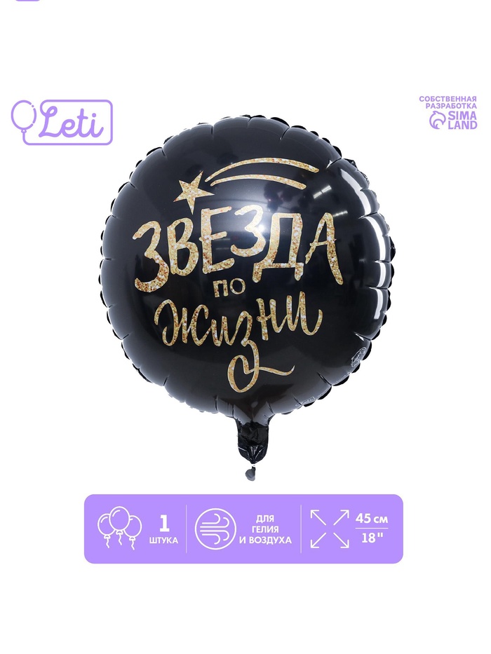 Воздушный шар фольгированный 18" «Звезда по жизни», круг, с подложкой — Характеристики