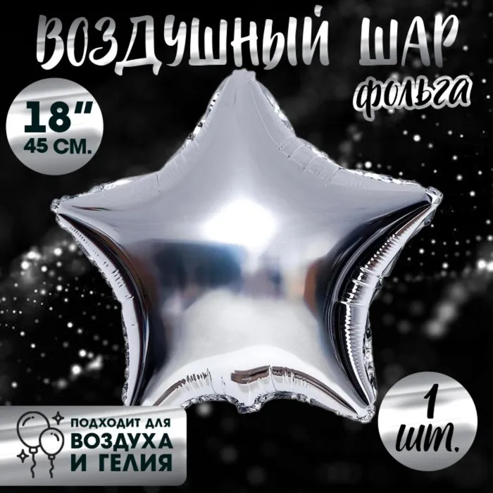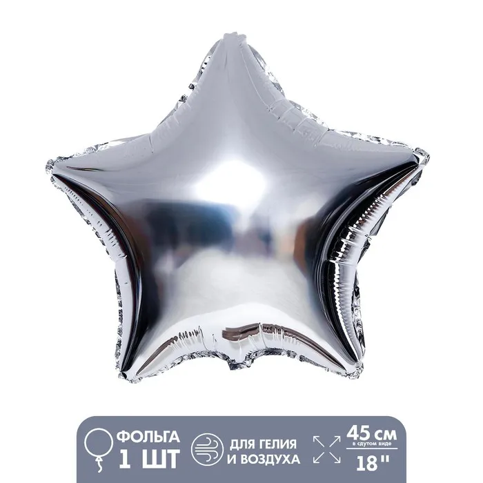 Воздушный шар фольгированный 18" «Звезда», серебряный — Характеристики