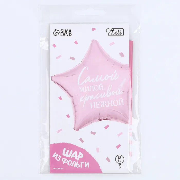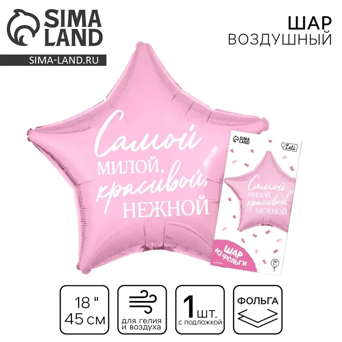 Воздушный шар фольгированный 18"«Самой милой», звезда, с подложкой — Характеристики