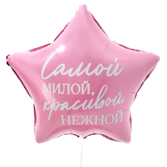 Фольгированный шар в виде звезды нежно-розового цвета с надписью: «Самой милой, красивой, нежной» подойдёт в качестве дополнения к подарку для любимой девочки, девушки или женщины. Также с помощью нескольких шаров можно оформить помещение для празднования Дня Рождения или Восьмого Марта.