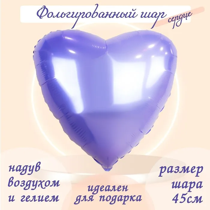 Воздушный шар фольгированный 19" «Сердце», сиреневый — Характеристики