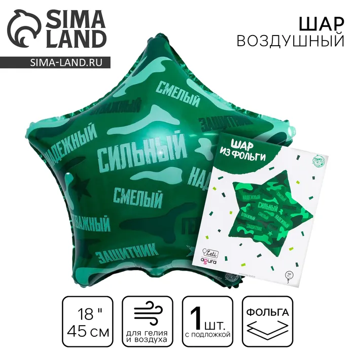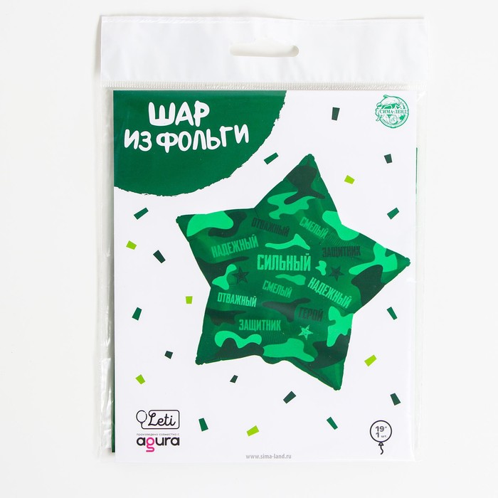 Воздушный шар фольгированный 19" «Сильный, надёжный!», звезда, цвет зелёный — Характеристики