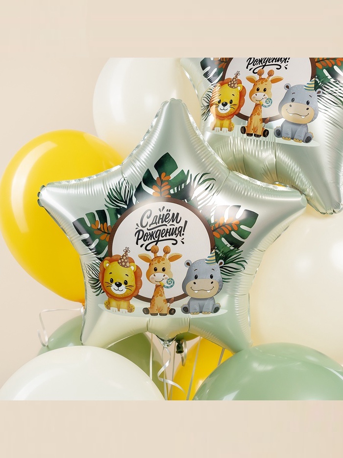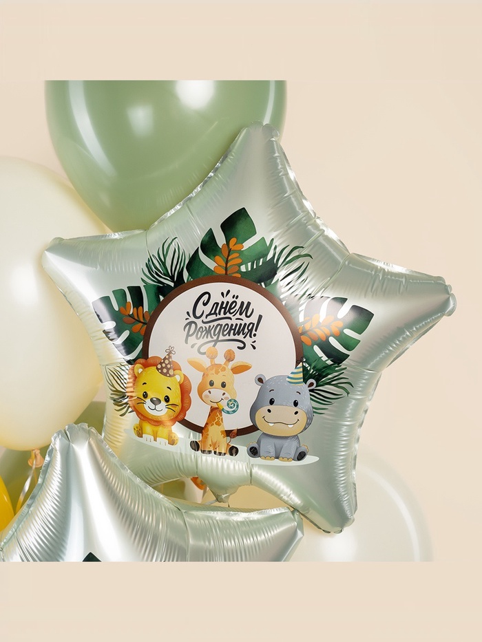 Воздушный шар фольгированный 19" «Весёлые зверята. Звезда», 5 шт. — Характеристики