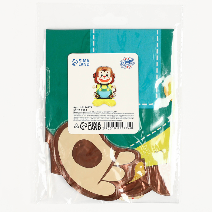 Воздушный шар фольгированный 20" «Милая обезьянка на подставке», под воздух — Характеристики