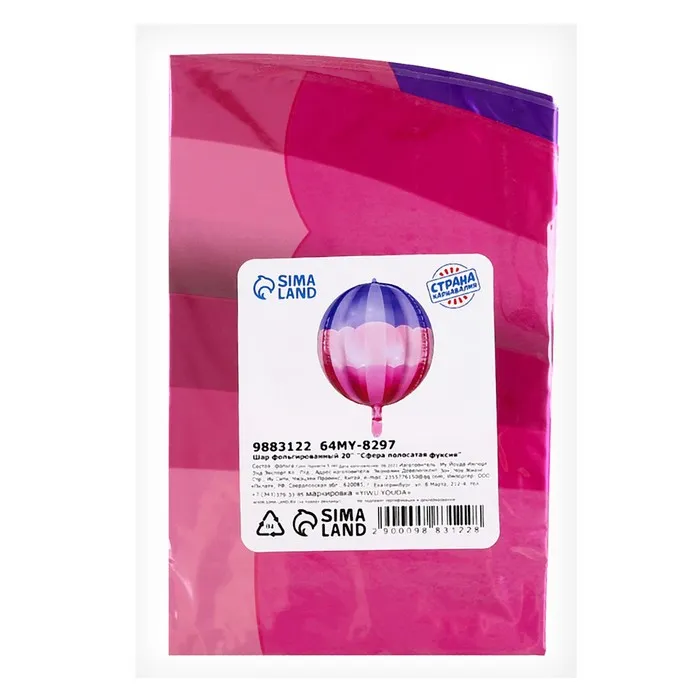 Воздушный шар фольгированный 20" «Сфера полосатая», фуксия — Характеристики