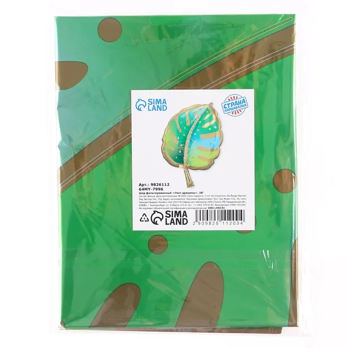 Воздушный шар фольгированный 22" «Лист драцены», фигура — Характеристики