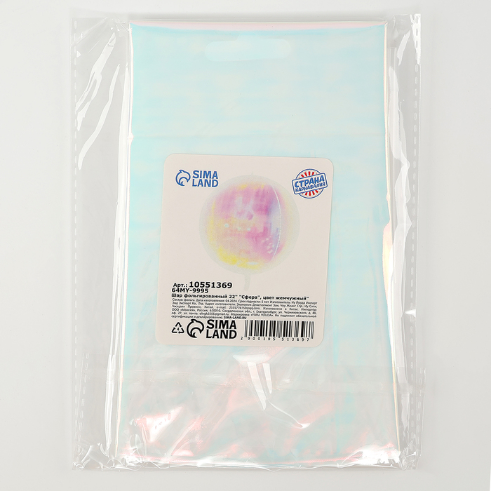 Воздушный шар фольгированный 22" «Сфера», перламутровый — Характеристики