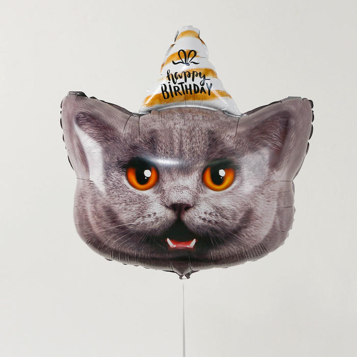 Фольгированный шар в виде милого кота с колпаком, на котором написано «Happy birthday» станет отличным дополнением к подарку на День рождения. Воздушный шар можно использовать как атрибут для фотосессии или в качестве декора для помещения.