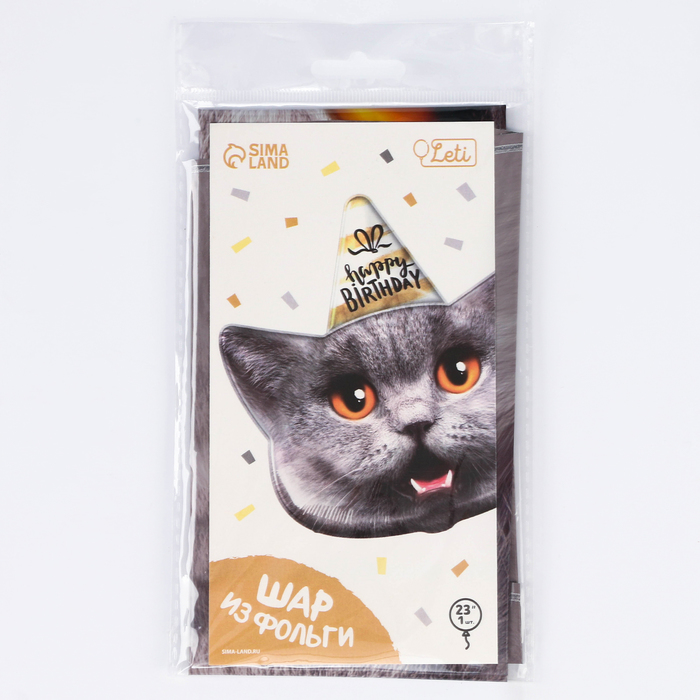 Воздушный шар фольгированный 23" «Кот — с днём рождения», с подложкой — Характеристики