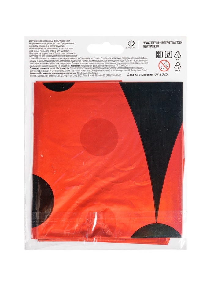 Воздушный шар фольгированный 24" «Божья коровка» — Характеристики