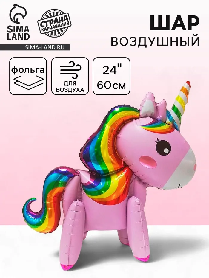 Воздушный шар фольгированный 24" «Единорог-игрушка», под воздух, розовый — Характеристики