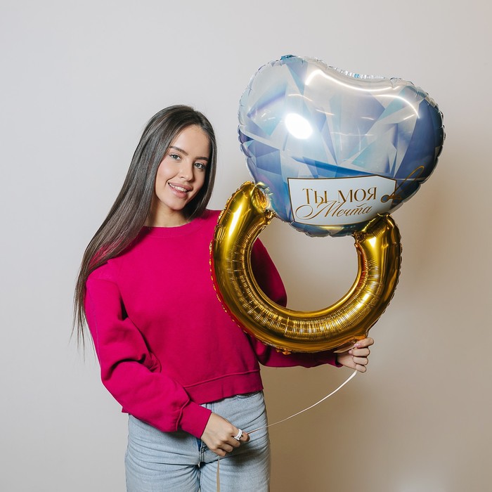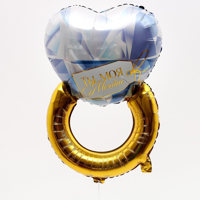 Фольгированный шар в виде кольца с бриллиантом поможет оформить помещение для празднования помолвки или свадьбы. На шаре есть надпись «Ты моя мечта». Подойдёт для оформления фотозоны. Из нескольких шаров можно создать букет.