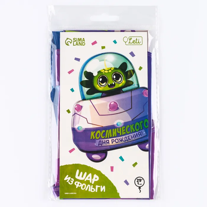 Фольгированный шар в виде летающей тарелки с пришельцем с надписью «Космического Дня рождения!» поможет оригинально поздравить ребёнка с праздником. Используйте шар как атрибут для фотосессии или соберите букет из воздушных шаров.