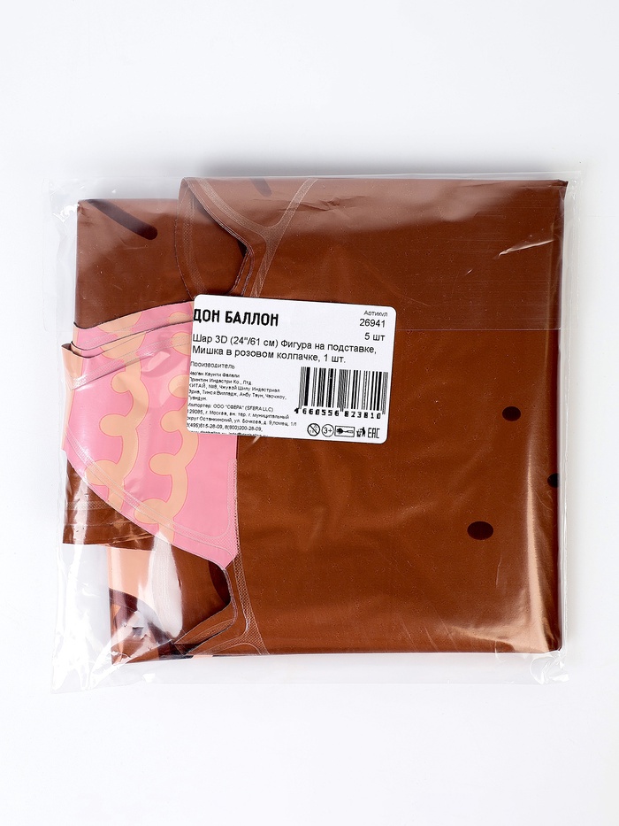 Воздушный шар фольгированный 24" «Мишка в розовом колпачке», под воздух — Характеристики
