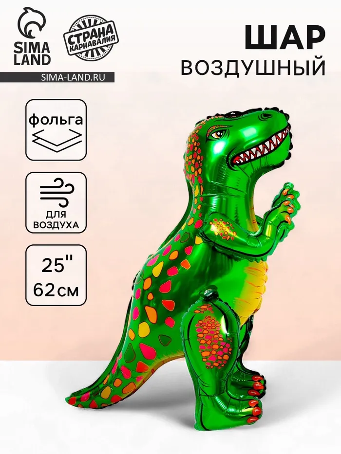 Воздушный шар фольгированный 25" «Динозавр аллозавр», фигура, под воздух — Характеристики