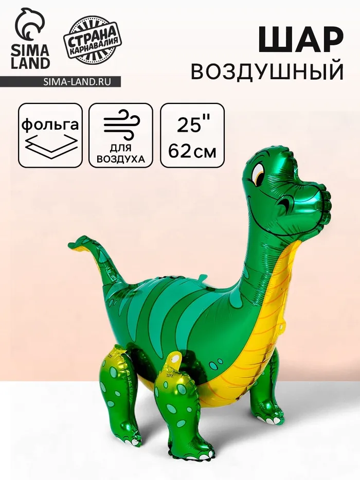 Воздушный шар фольгированный 25" «Динозавр брахиозавр», фигура, под воздух — Характеристики