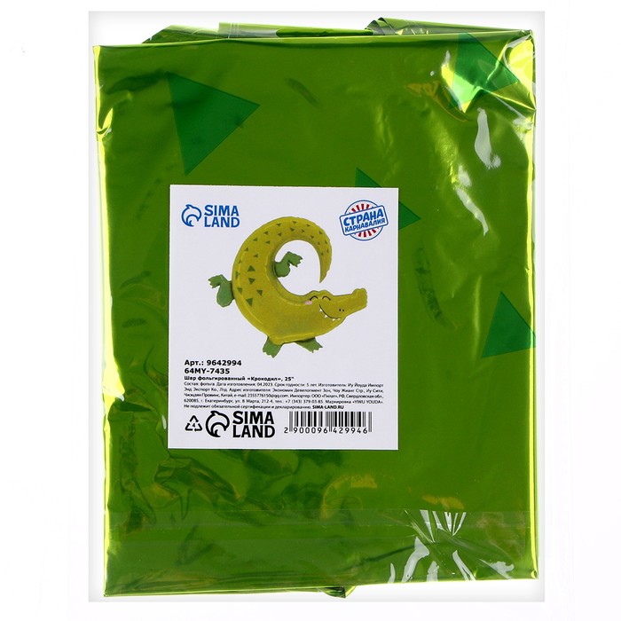 Воздушный шар фольгированный 25" «Крокодил», фигура — Характеристики