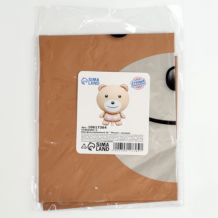 Воздушный шар фольгированный 25" «Мишка», фигура, матовый, под воздух — Характеристики