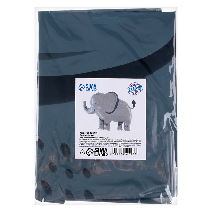 Воздушный шар фольгированный 25" «Слон», фигура — Характеристики