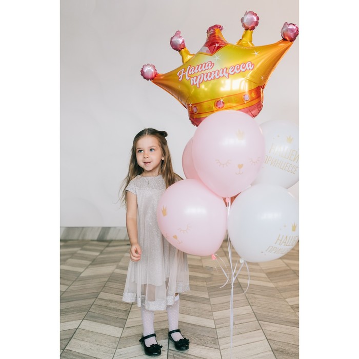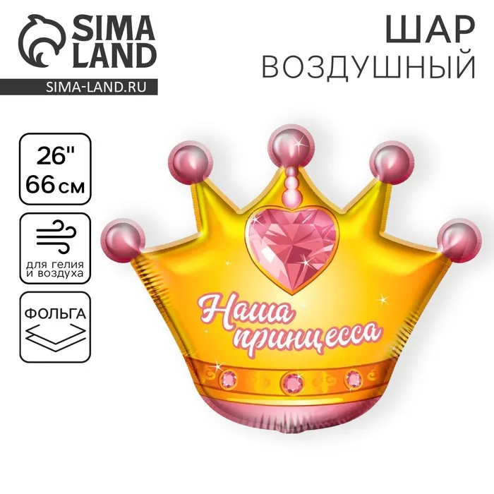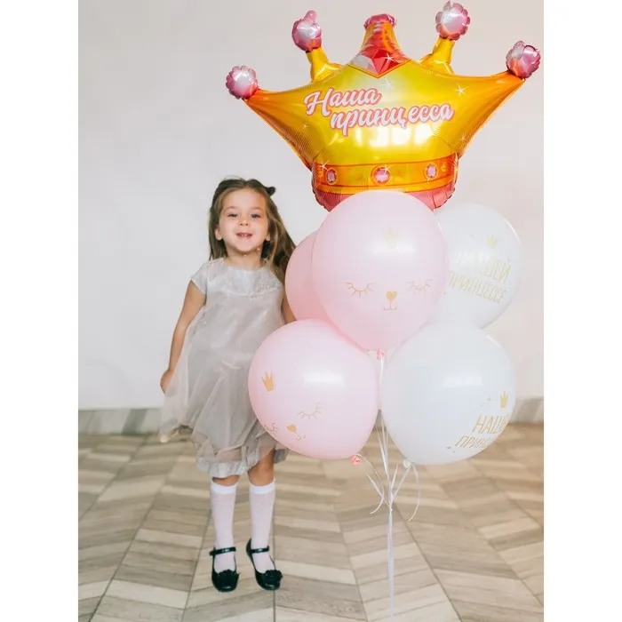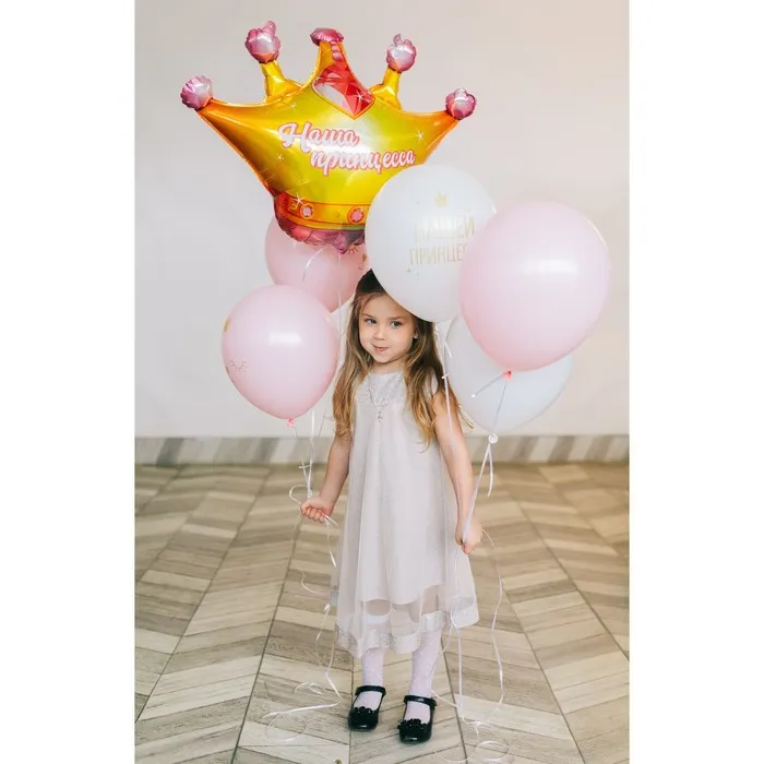 Фольгированный шар в виде короны с надписью «Наша принцесса» поможет оригинально оформить день рождения для любимой дочки! Используйте шар как атрибут для фотосессии, сделайте гирлянду или соберите букет из воздушных шаров.
