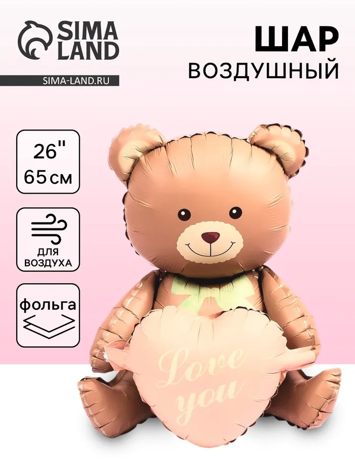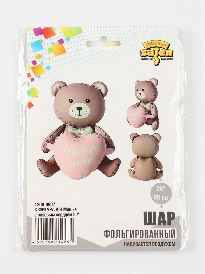 Воздушный шар фольгированный 26" «Медведь с сердцем», матовый, под воздух — Характеристики