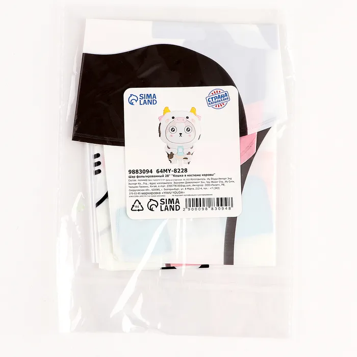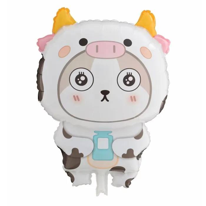 Фольгированный шар в виде фигуры диаметром 28 дюймов с изображением очаровательной кошечки в костюме коровки станет ярким украшением любого праздника. Этот разноплановый воздушный шар сочетает в себе элементы двух популярных персонажей — кошки и коровы, что делает его очень забавным и оригинальным.