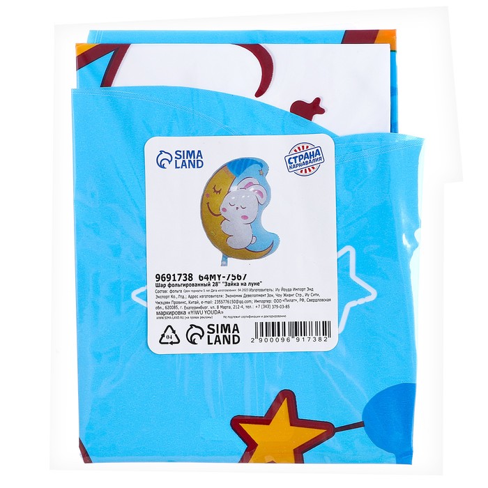 Воздушный шар фольгированный 28" «Зайка на луне», фигура — Характеристики