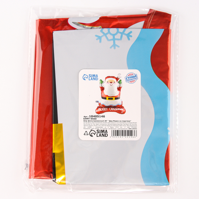 Воздушный шар фольгированный 30" «Дед Мороз», на подствке — Характеристики