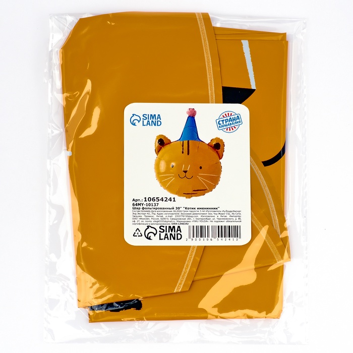 Воздушный шар фольгированный 30" «Котик именинник», фигура — Характеристики