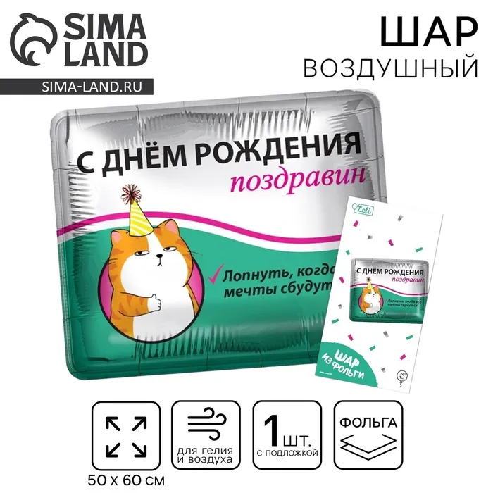 Воздушный шар фольгированный 31" "Поздравин", квадрат, с подложкой — Характеристики
