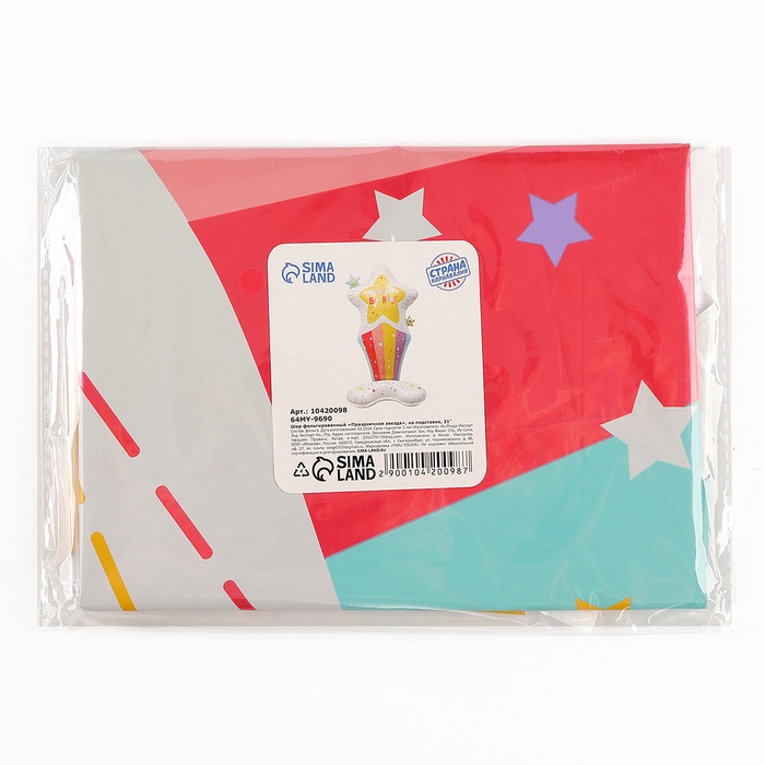 Воздушный шар фольгированный 31" «Праздничная звезда на подставке» — Характеристики