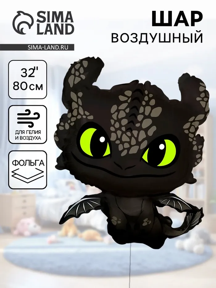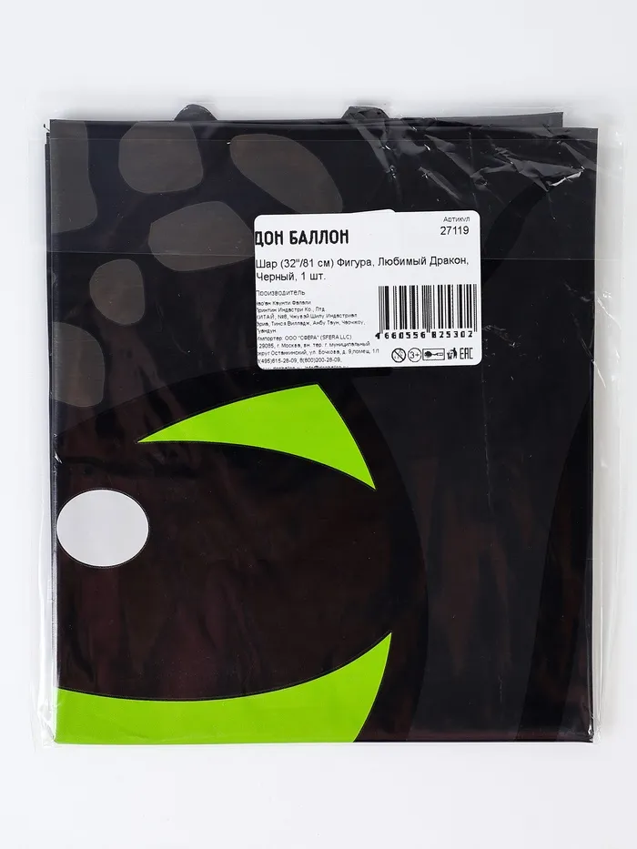 Воздушный шар фольгированный 32" «Дракон», чёрный — Характеристики