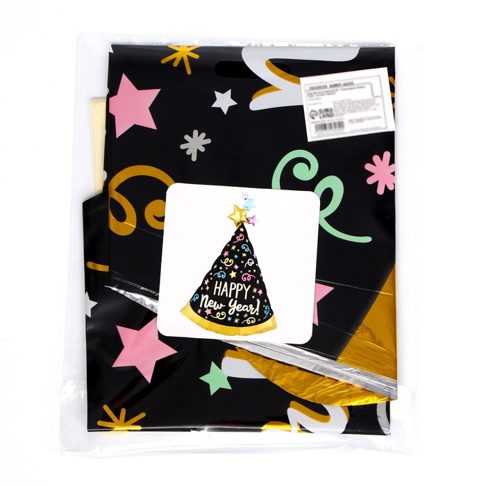 Воздушный шар фольгированный 32" Happy New Year, колпак, чёрный — Характеристики