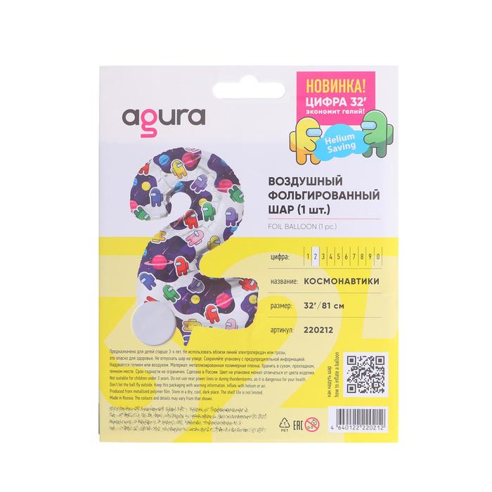 Воздушный шар фольгированный 32" «Космонавтики», цифра 2 — Характеристики