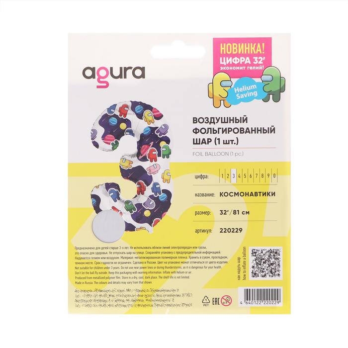 Воздушный шар фольгированный 32" «Космонавтики», цифра 3 — Характеристики