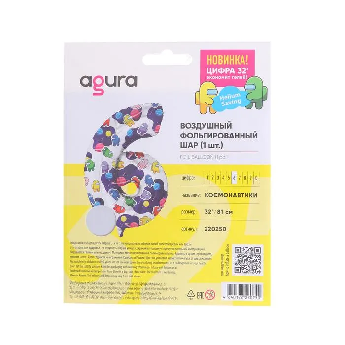 Воздушный шар фольгированный 32" «Космонавтики», цифра 6 — Характеристики