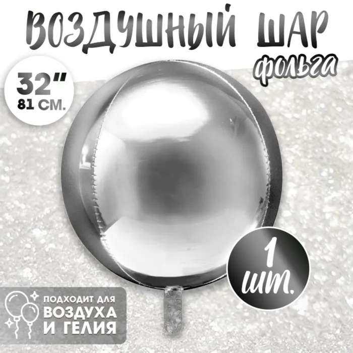 Воздушный шар фольгированный 32" «Сфера», серебряный — Характеристики