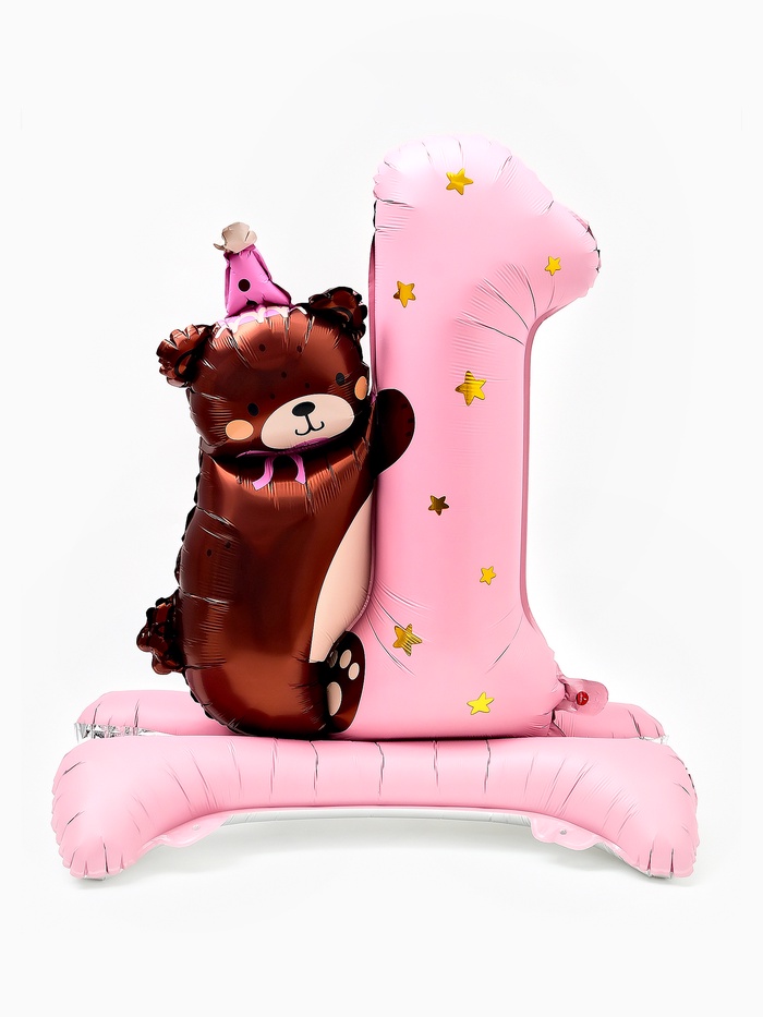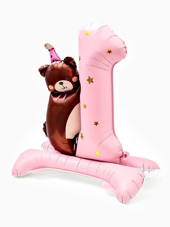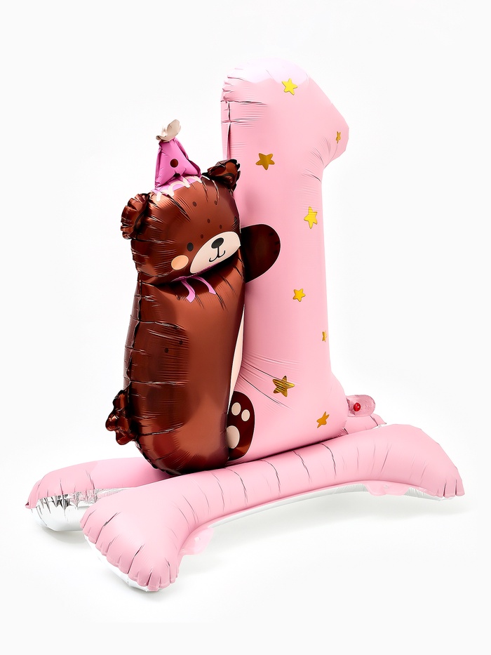 Воздушный шар фольгированный 32" «Цифра 1 с мишкой», под воздух, розовый — Характеристики
