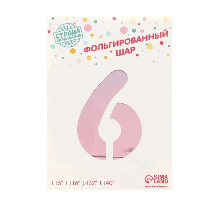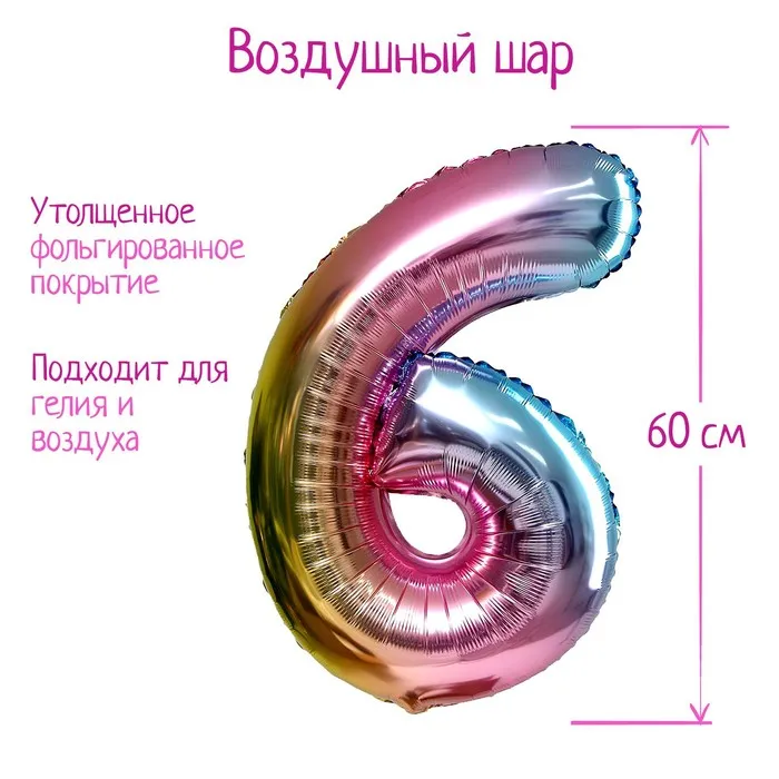Воздушный шар фольгированный 32" «Цифра 6», градиент — Характеристики