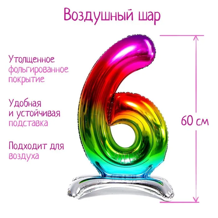 Воздушный шар фольгированный 32" «Цифра 6», на подставке, градиент — Характеристики