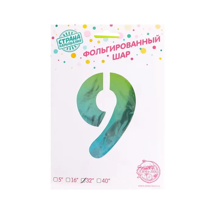 Воздушный шар фольгированный 32" «Цифра 9», на подставке, под воздух — Характеристики