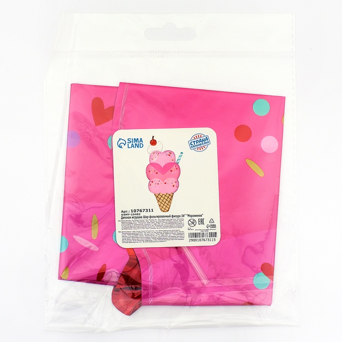 Воздушный шар фольгированный 34" «Мороженое», фигура — Характеристики