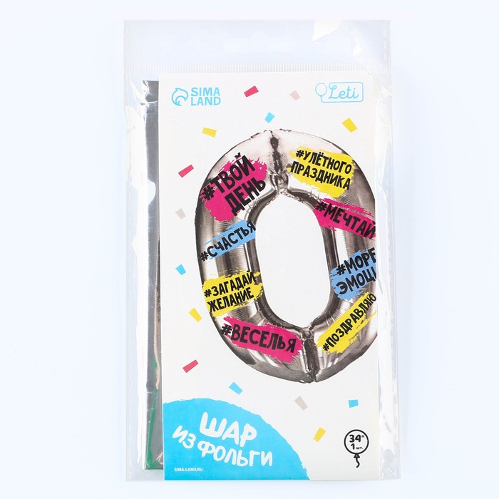 Воздушный шар фольгированный 34" «Цифра 0», с подложкой — Характеристики