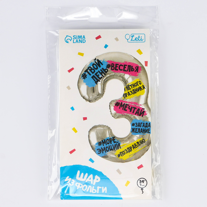 Воздушный шар фольгированный 34" «Цифра 3», с подложкой — Характеристики